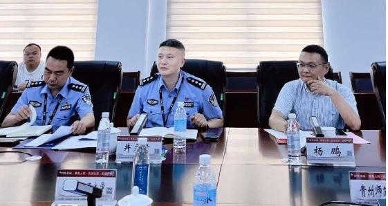 在知行楼434会议室举行的交流与探讨环节,贵安公安局井立贵局长对贵州理工学院校园110的工作给予了高度评价。他表示,校园110已初步形成体系,作为贵安大学城各高校的示范点,其运营情况值得借鉴学习。他强调,各高校应加强合作与交流,共同为校园安全贡献力量。