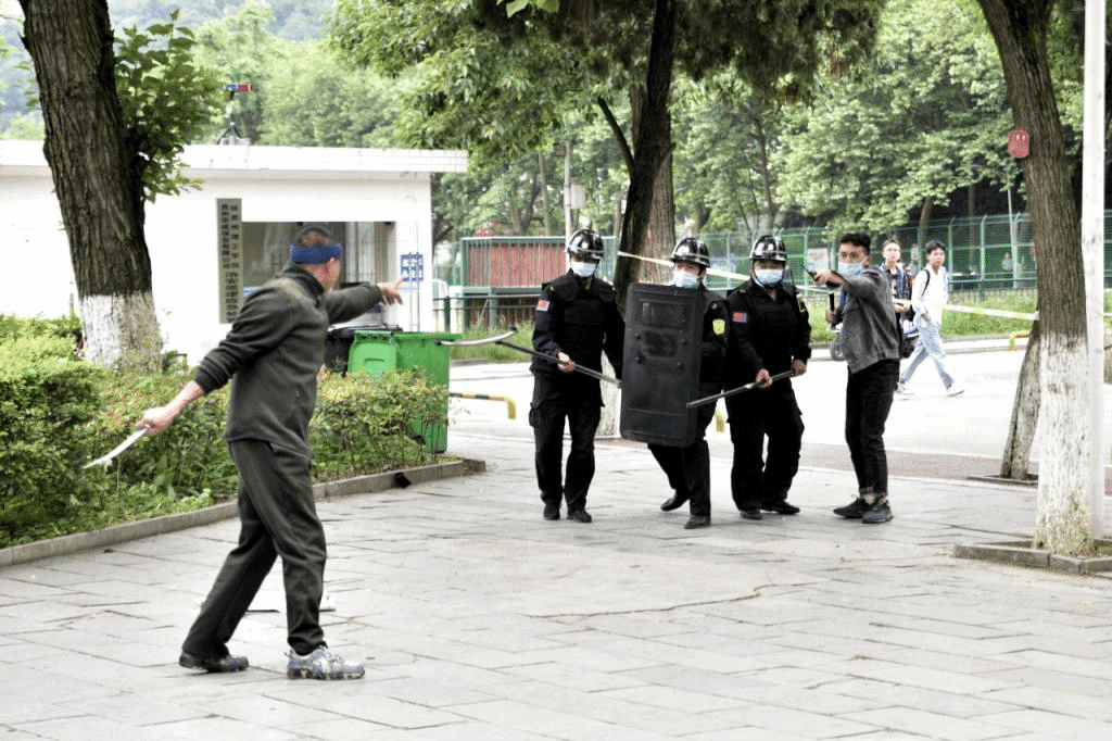 场景二:持刀“歹徒”进入校园意图挟持学生演练现场