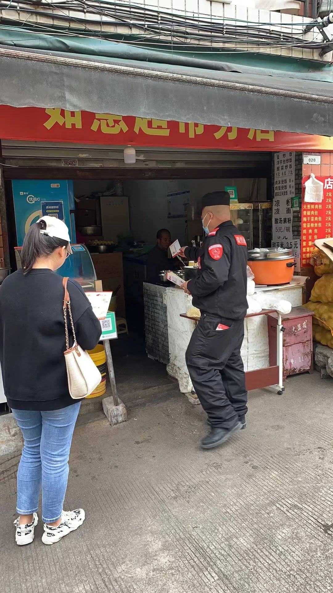 第四区域是资料发放区,现场对过往师生员工发放消防宣传资料,并结合实际,对校园周边商铺开展消防巡查排查以及通过“敲门行动”对学生宿舍开展排查和消防宣传教育。
