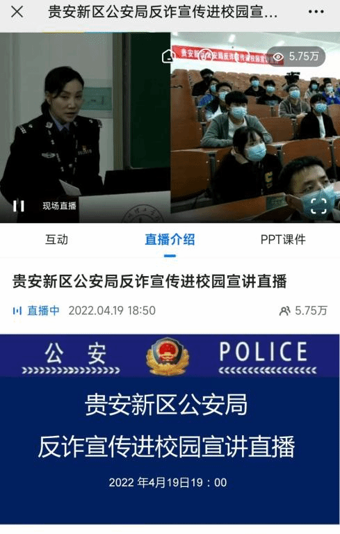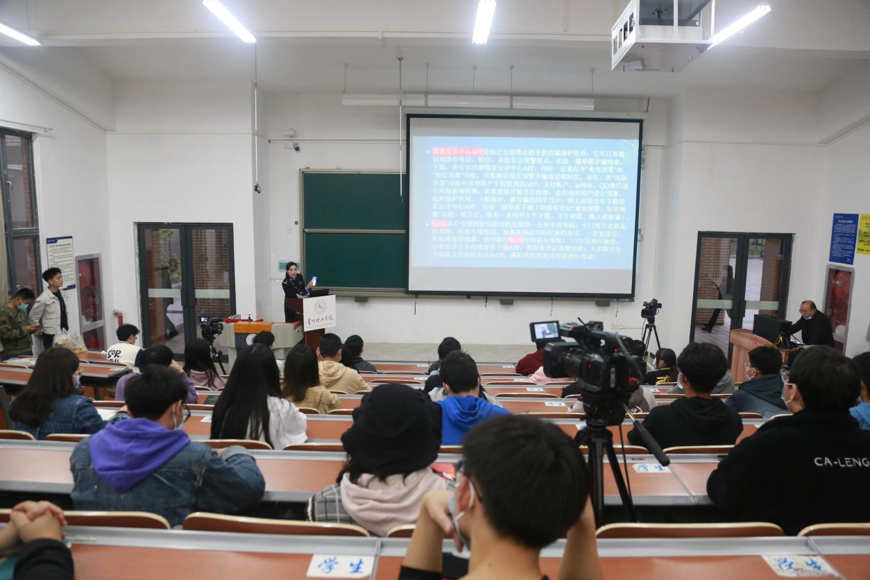 为进一步提高同学们防范电信网络诈骗意识,营造浓厚的校园反诈宣传氛围,4月19日晚,保卫处联合贵安新区公安局刑侦支队开展“反诈宣传进校园”线上线下讲座活动,王恩荣副支队长到校宣讲。通过本次宣讲,使同学们更加了解电信网络诈骗的发案特点,掌握防范要领,谨防参与电信网络诈骗,做到防范电信网络诈骗宣讲入耳、入 脑、入心,共筑校园反诈防骗的“防火墙”。