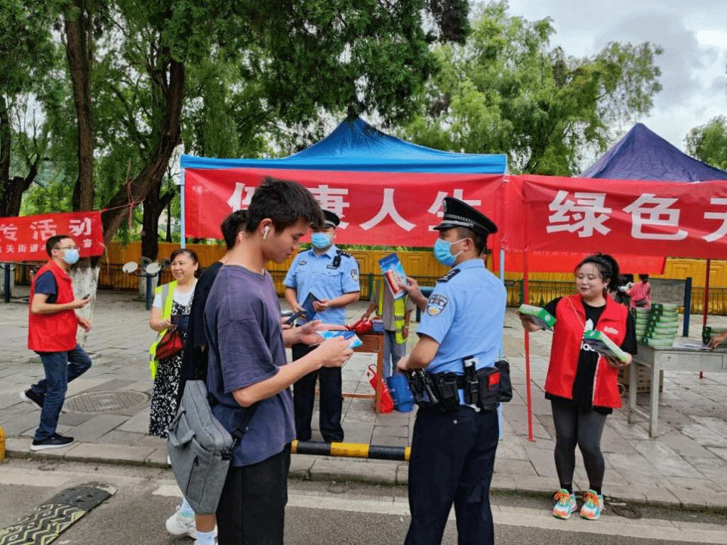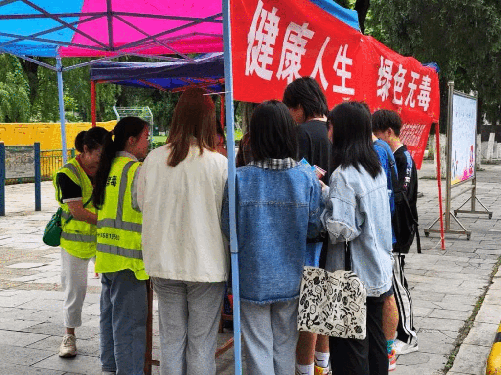 为了进一步加强禁毒宣传教育,增强学生识毒、拒毒、防毒的意识。6月23日,保卫处联合金关街道办、金关派出所在蔡家关校区开展“健康人生 绿色无毒”为主题的禁毒宣传教育活动,贵安校区同步开展相关宣传活动。现场工作人员向学生发放禁毒宣传资料和纪念品,派出所民警现场向学生介绍毒品对国家、家庭和个人的危害,同学们在禁毒签名墙上郑重签下自己的名字。