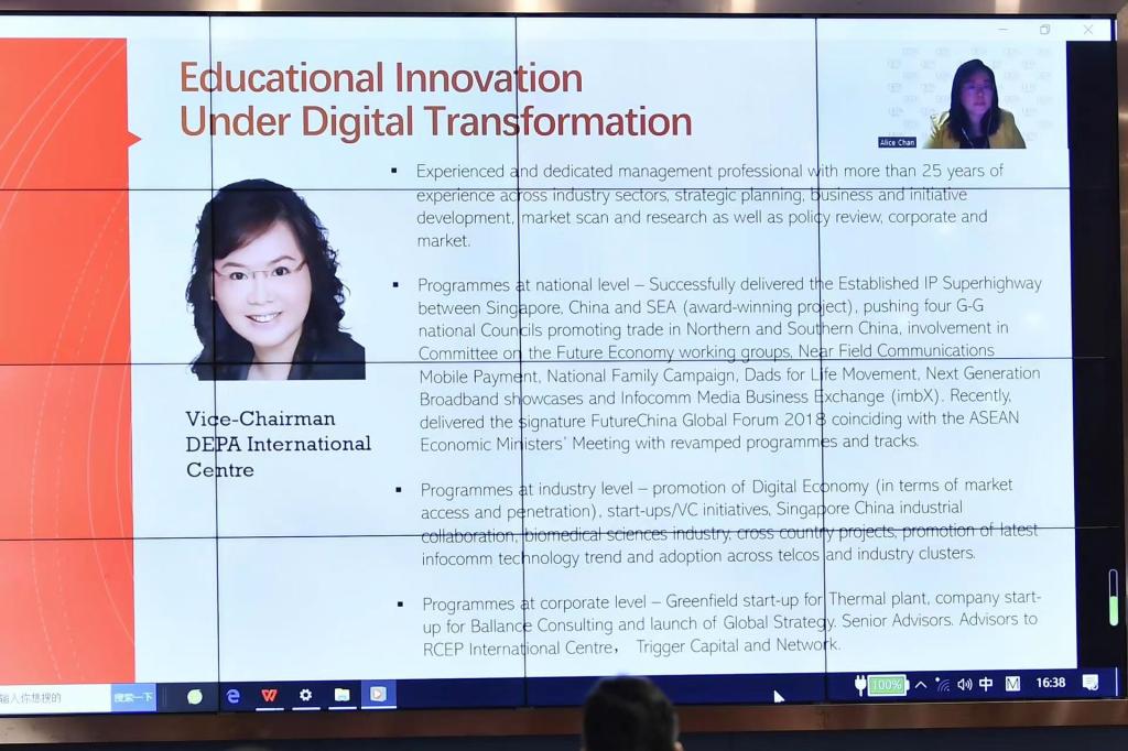 北京市教育国际交流协会会长黄侃从教育数智化的转型系统化推进、内涵和本质、发展方向、目标核心等方面全面阐述数字赋能高等教育;马来西亚拉曼大学校长、东盟工程与技术科学院主席Ewe Hong Tat介绍了数智时代的机遇与挑战,从数智赋能教育创新的角度分享了学校案例;江西开放大学党委书记贺瑞虎围绕“以数字化推动全民终身教育创新发展”进行深入讨论;北京工商大学商学院兼研究生院院长毛新述从商科数字化转型的背景、路径探索及成效三个方面分享了北京工商大学数字化转型的经验。数字经济伙伴关系协定国际中心副主席董事 Alice Chan详细介绍了东盟国家及新加坡在教育领域的数字化现状,提出数字化转型下的教育革新合作探索;印度尼西亚万隆克里斯汀大学商学院教授Surya Setyawan详细介绍了万隆克里斯汀大学“Morning”数字化教育案例;北京工商大学数字经济研究院执行院长葛红玲围绕数字时代的变化、人才需求变化、新商科人才特征及人才培育四个方面介绍了数字化发展对人才培育的新要求。