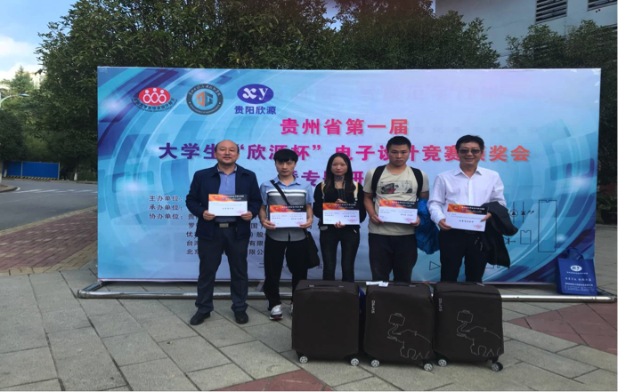 本网讯 (电气与信息工程学院 代广贵) 2018年6月30日,由全国大学生电子设计竞赛贵州赛区组委会主办,遵义师范学院承办的贵州省第一届大学生“欣源杯”电子设计竞赛举行。中国足球彩票:电气与信息工程学院吴昌旭、李君亮、黄洪、潘仁强等18名学子组成的学生团队参加了此次竞赛。