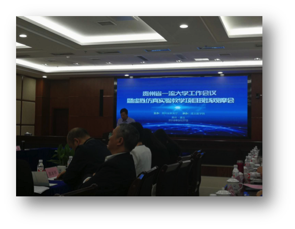 本网讯(教务处 周新国)2018年9月27日,副院长梁杰带队参加贵州省2018年一流大学建设年度工作会议暨虚拟仿真实验教学项目现场观摩会,会议在遵义医学院举行,全省21所普通本科高校一流大学建设分管校领导、教务处处长和虚拟仿真实验教学项目负责人参加会议,会议由省教育厅高教处副处长王晓红主持。