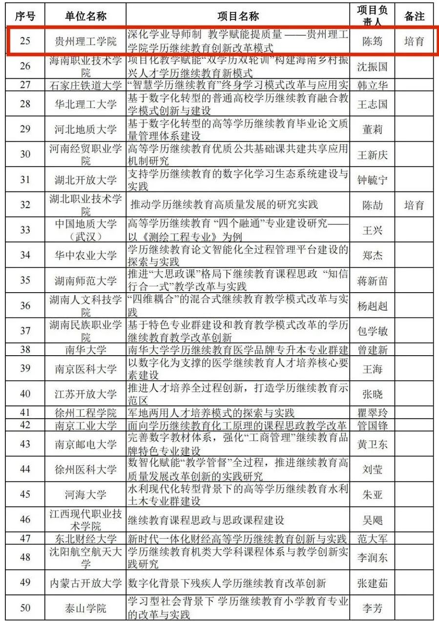 本网讯 日前,教育部公示2023年学习型社会建设(高等继续教育领域)重点任务名单,其中,贵州理工学院学历继续教育教学改革创新项目高校项目入围。