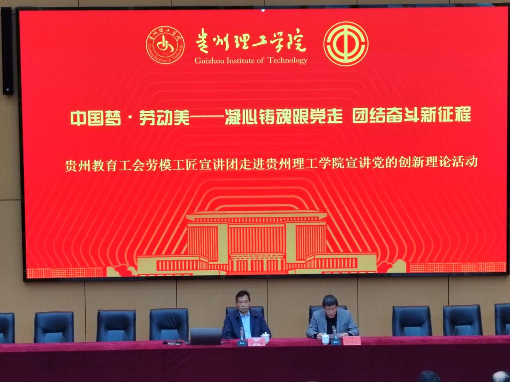 本网讯(校工会) 12月1日,贵州理工学院工会委员会在图书馆报告厅开展以“中国梦·劳动美——凝心铸魂跟党走 团结奋斗新征程”为主题的“劳模工匠宣讲党的创新理论”活动,贵州大学农学院副院长、博士、博士生导师龙友华教授应邀主讲。校党委副书记高勇出席活动。