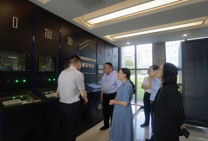 李少波、安艳玲一行参观了贵州汇通华城股份有限公司产品展示厅、远程监控中心、仿真调试车间和大数据机房。