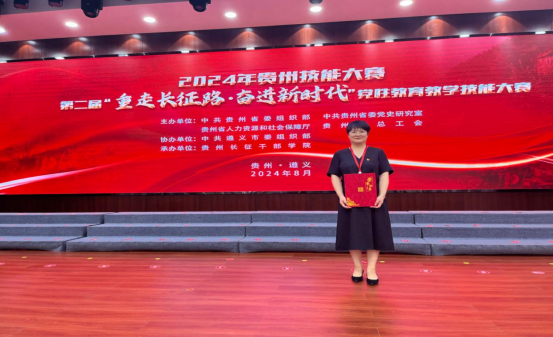 8月26日至28日,由贵州省委组织部、中共贵州省委党史研究室、贵州省人力资源和社会保障厅、贵州省总工会主办的贵州省“重走长征路·奋进新时代”党性教育教学技能大赛在贵州长征干部学院隆重举行。比赛分为专题教学和现场教学两大类,马克思主义学院教师石春艳在专题教学中荣获三等奖。