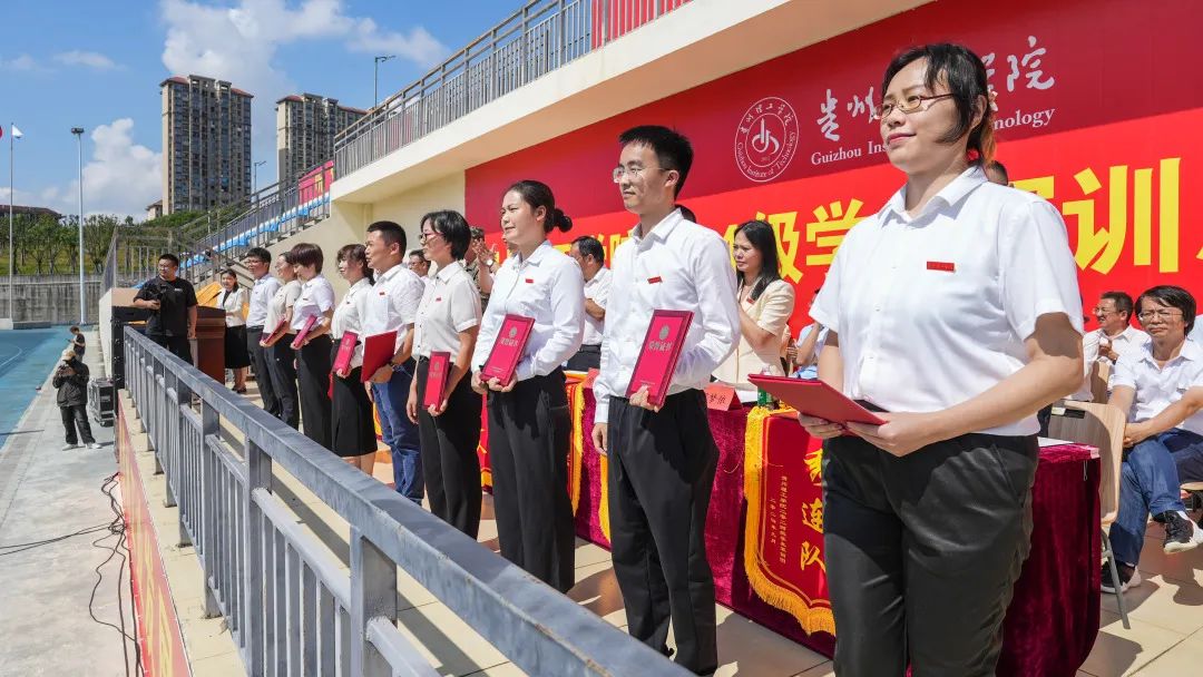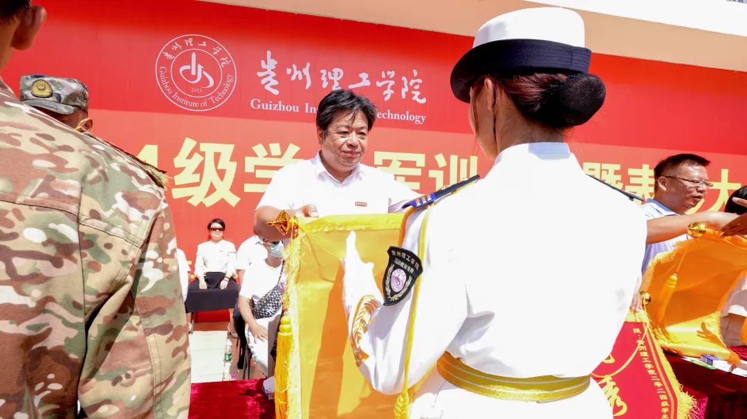 校党委副书记、2024级学生军训团政委高勇宣读《贵州理工学院2024级学生军训团中国足球彩票表彰学生军训先进集体和先进个人的决定》。