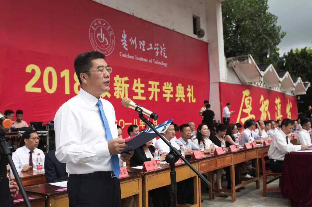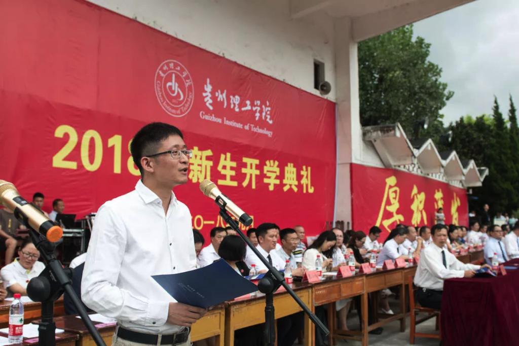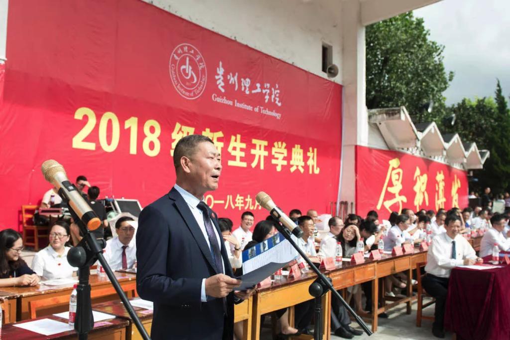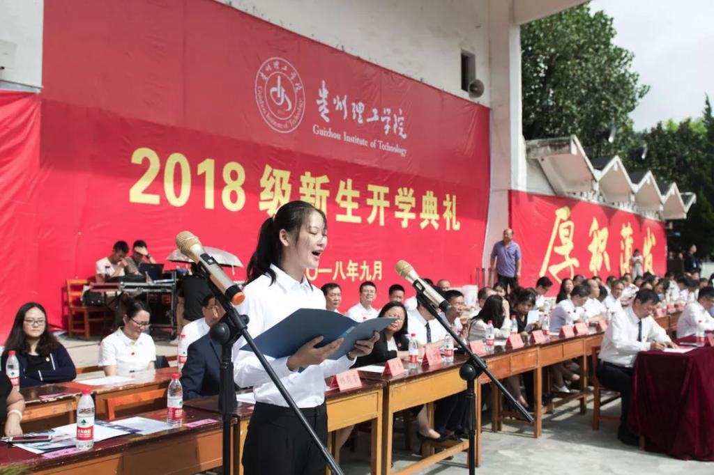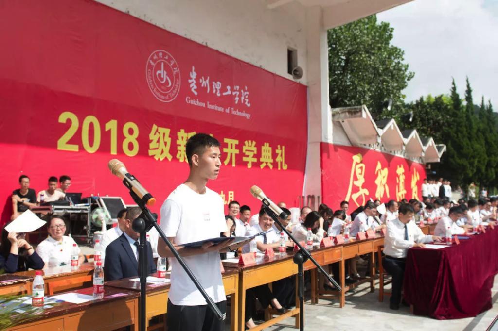本网讯(党委宣传部学生记者团 彭晨岚)硕果飘香季,金秋迎新时,栖凤山下美丽校园又迎来了一届意气风发、朝气蓬勃的新同学。9月2日上午,贵州理工学院2018级新生开学典礼在体育场隆重举行,2906名新同学昂首迈进贵州理工学院,开启人生新征程。