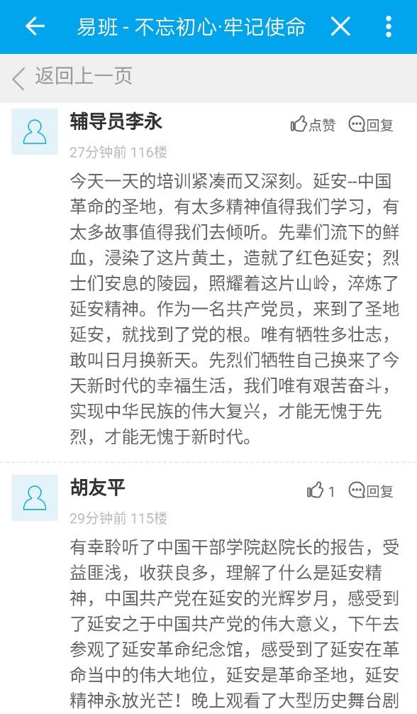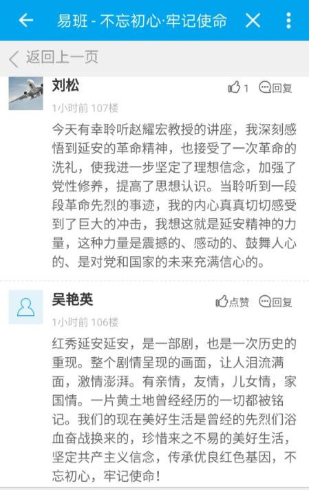 经过一天的学习,培训人员还通过学校易班平台谈心得、话感悟,共同分享当天的所学所悟、所得所获。