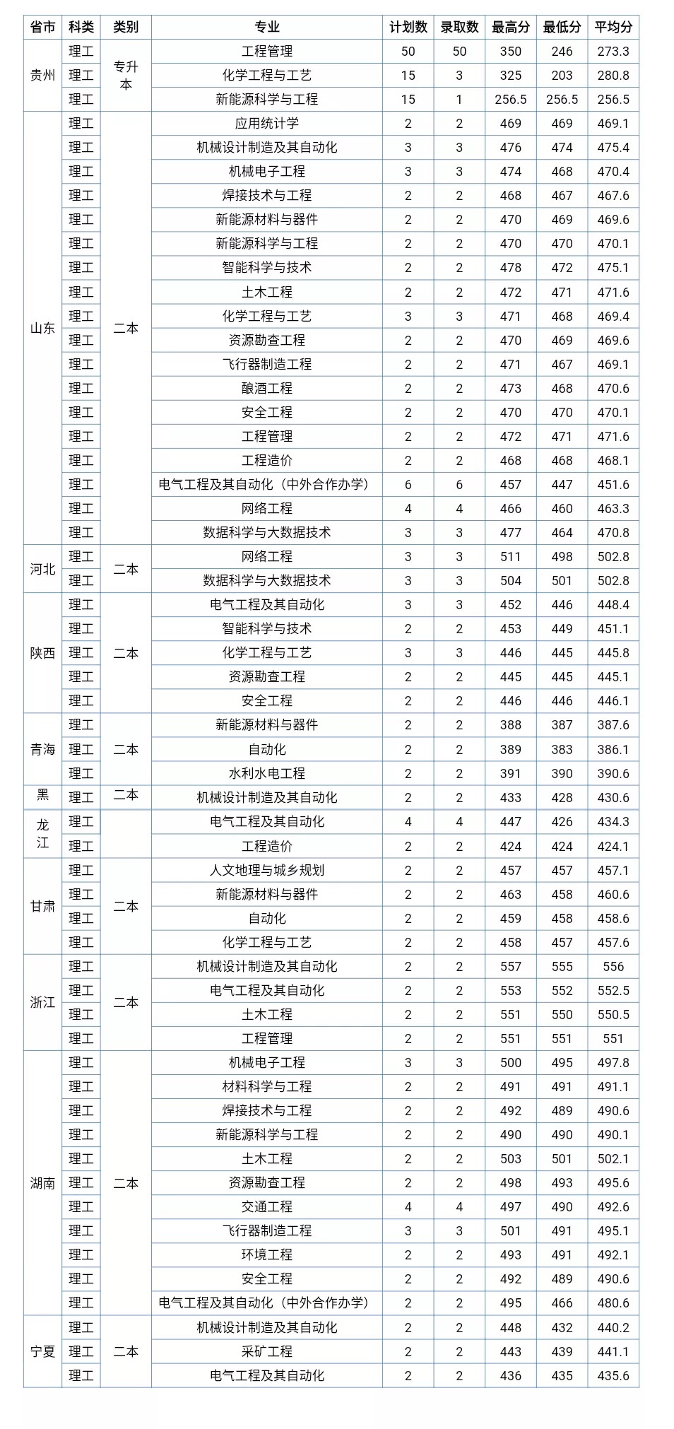 附:山东、河北、陕西、青海、黑龙江、浙江、湖南、宁夏、甘肃及贵州(专升本)录取情况
