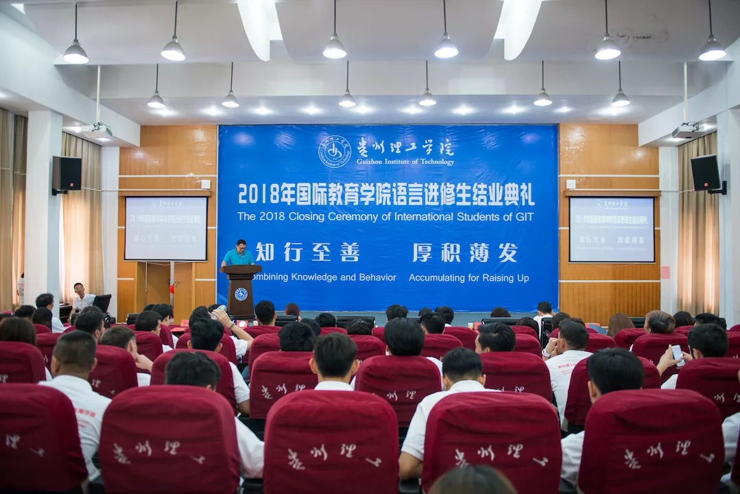 本报讯(国际交流与合作处 朱敏芳/文 熊兴建/图)7月16日下午,贵州理工学院国际教育学院2018届国际学生结业典礼在喀斯特报告厅举行,副校长宋建波出席结业典礼。