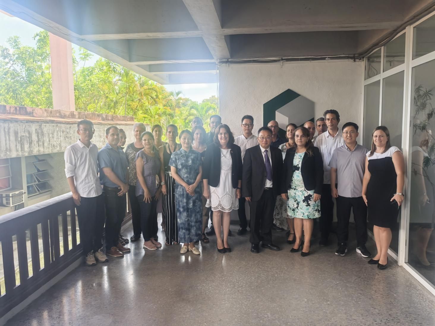 7月24日,潘良明一行应邀访问哈瓦那科技大学,受到了校长玛莎·杜尼亚·德尔加多·达佩纳、教学副校长安娜·伊莎贝尔·冈萨雷斯·桑托斯、基金会主席达娜厄·皮盖拉斯·奥特罗,古巴国家土木工程职业委员会主席威廉·科贝洛·克里斯蒂亚的热情欢迎和接待。双方围绕推进联合学院的实施管理、人才培养、师生交流、科研合作及联合培养硕士研究生等工作座谈并达成合作意向,签署了两校联合培养硕士研究生框架协议。
