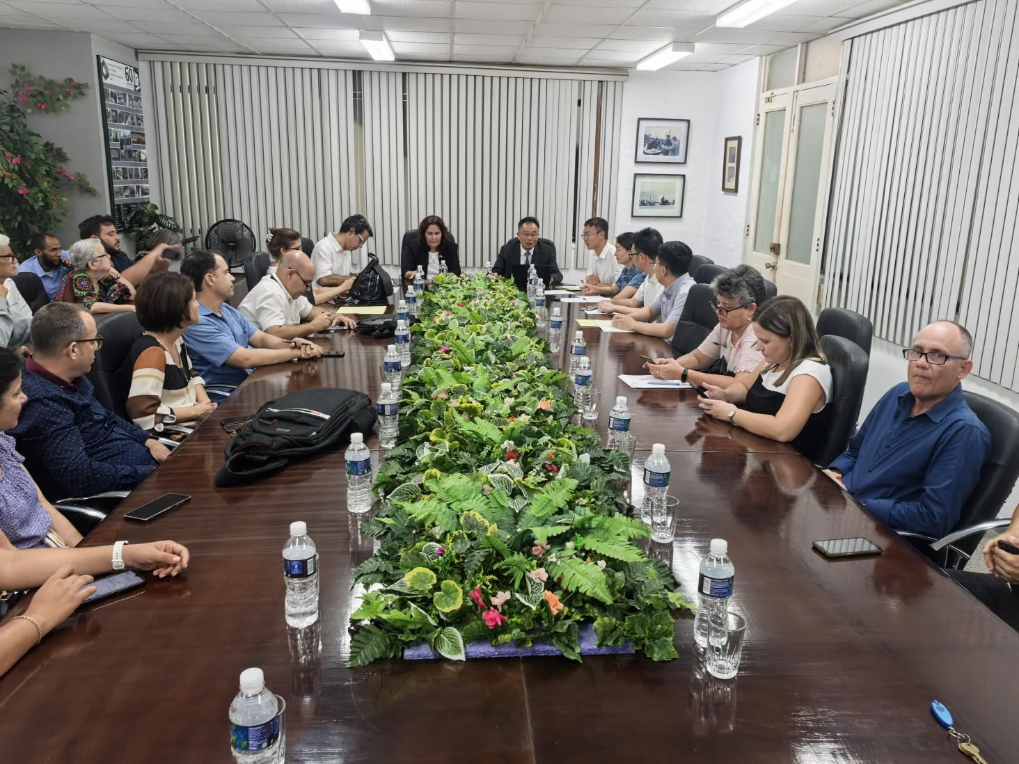 7月26日上午,潘良明一行参观由哈瓦那科技大学、淄博职业技术大学、山东意科特股份有限公司共同建设的班·墨学院。参观中,代表团与山东意科特古巴公司负责人董涛深入交流,详细了解了班·墨学院的校企合作模式、运行机制及属地员工培训特色,重点探讨了如何依托海外中资企业资源,推动高校与当地教育机构深化合作,共同探索产教融合、校企协同的国际化办学新路径。