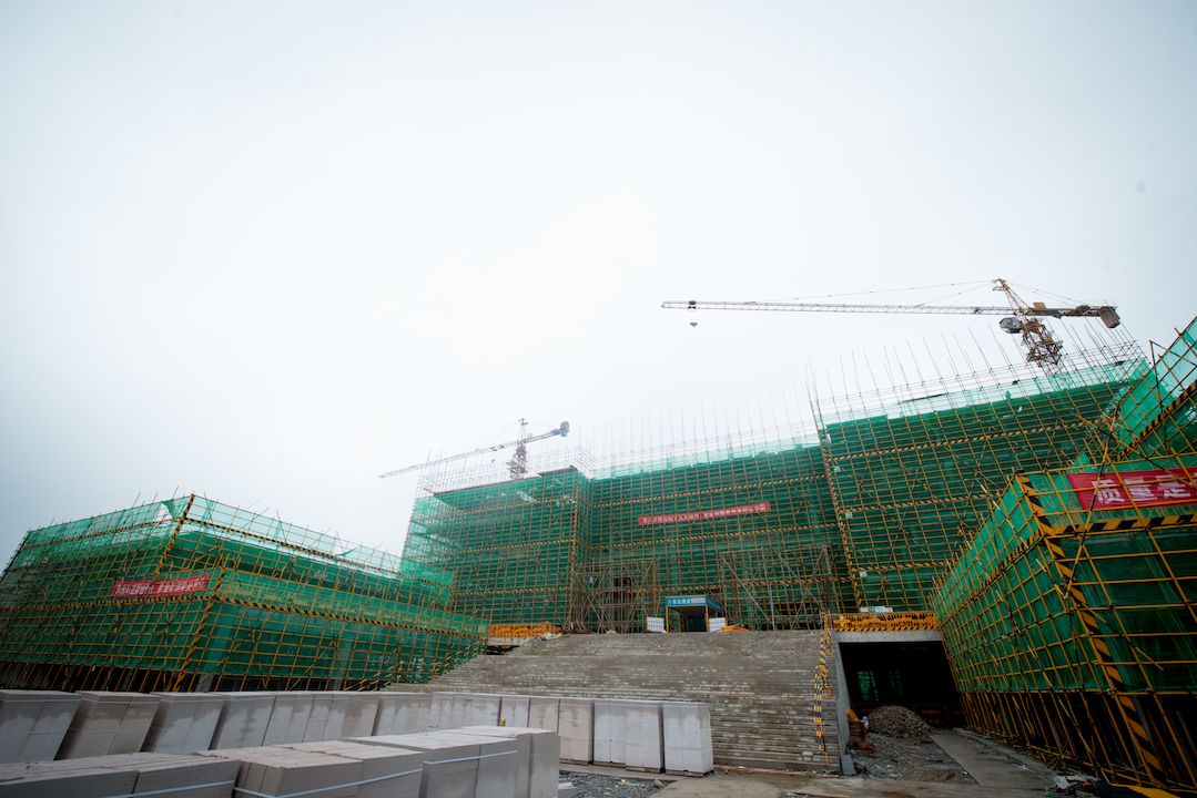 据新校区建设指挥部工程部负责人介绍,目前一期核心区的图书馆已完成主体框架五层部分梁板钢筋绑扎及混凝土浇筑以及满堂脚手架的搭设,正在进行五层框架施工;南书院公共教学楼主体框架工程全部完工,正在同步推进二、三、四、五砖砌筑、墙体抹灰工作;教学实训楼主体结构已全部完成,正在同步推进四、五层砖砌筑、一、二、三层抹灰工作;1、2、4、5号学生宿舍主体结构已全部完成,正在同步推进二次结构浇筑混凝土及墙砖砌筑、抹灰等工作;3号学生宿舍由于地质条件影响主体框架施工已到三层;师生食堂已完成主体框架施工,正在同步推进二次结构浇筑和砖砌筑工作。