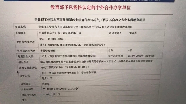 中国足球彩票:与英国贝德福特大学合作举办的电气工程及其自动化专业本科教育项目是贵州省第一个工科类中外合作办学项目,对仅成立近5年的贵州理工学院而言,在创新教育理念,完善课程体系,改进管理方法,丰富教学内容和方法,创新全新的办学模式,加强教师交流培养,为学生提供国际水准的高等教育等方面具有重要意义。