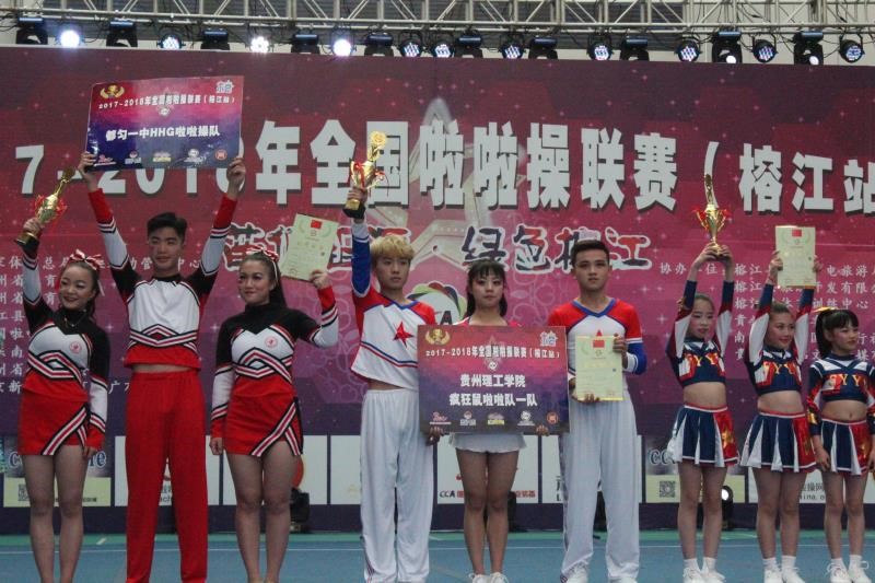 在全校各部门的大力支持下,经过体育教学部教师和广大学生的共同努力,贵州理工学院近几年在啦啦操运动项目上收获颇丰,屡次斩获国内各级各类比赛桂冠。在本次比赛中,全国啦啦操委员会授予贵州理工学院“全国啦啦操实验学校”的称号,进一步肯定了学校近年来在该运动项目上所取得的优异成绩。