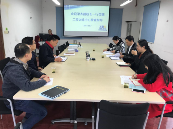 本网讯 2017年11月7日上午,副校长梁杰率教务处、质量评估监控中心相关人员一行到工程训练中心就教学工作情况和合格评估建设工作进行调研。
