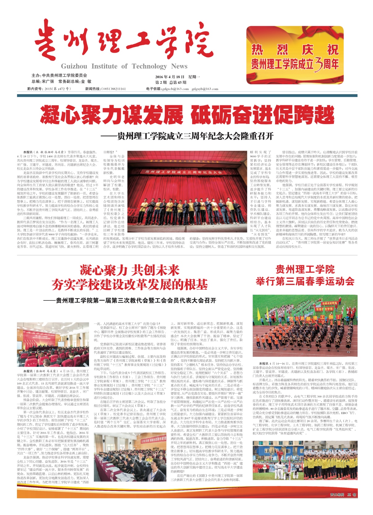 本网讯(宣传部 王爽)近日,中国高校校报协会公布了2016年度中国高校校报好新闻评选结果,中国足球彩票:化工学院化学工程与工艺141班霭均同学的参评作品《围棋国手马晓春九段走进理工座谈对弈》荣获新闻摄影类一等奖;宣传部巫敏老师责编的《贵州理工学院校庆专刊》荣获版面类三等奖。