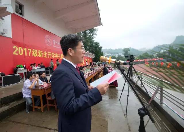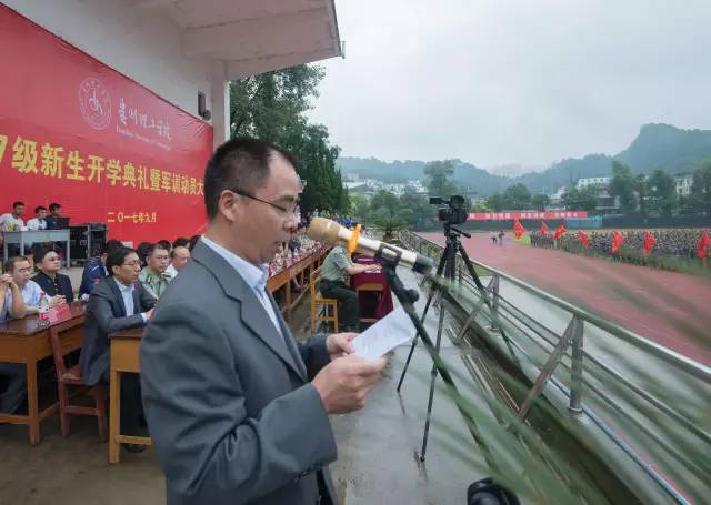 副校长、军训团团长梁杰宣读了《中共贵州理工学院委员会中国足球彩票成立2017级学生军训团的通知》。