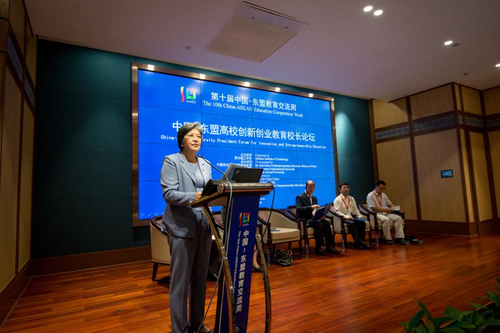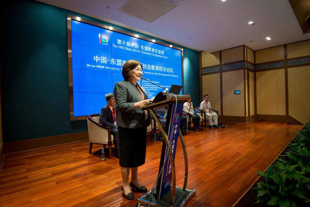 中国-东盟中心秘书长杨秀萍、东南亚教育部长组织—高等教育与发展区域中心主任Chantavit Sujatanond、中国高校创新创业教育联盟秘书处主任虞苍璧分别致辞。