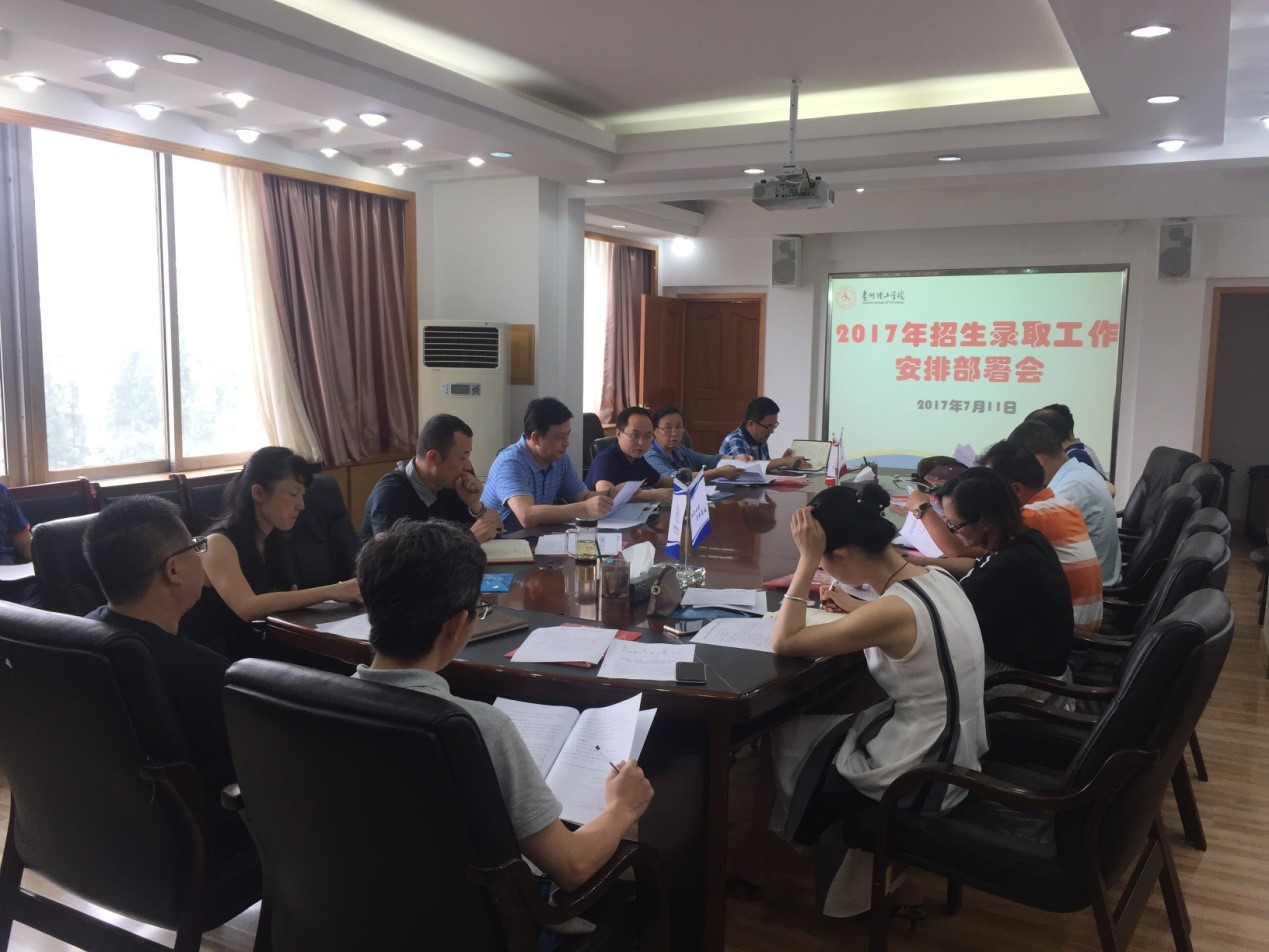 李源传达了《贵州理工学院中国足球彩票认真做好2017年招生录取工作的安排意见》(贵理工发[2017]101号)文件精神,围绕网络、录取、保卫、后勤、咨询5个方面对招生录取工作进行安排和说明。