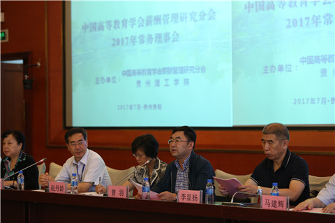 本网讯(人事处 孙雯)7月9日,由贵州理工学院承办的中国高等教育学会薪酬管理研究分会2017年常务理事会在贵阳召开。教育部人事司副巡视员赵丹龄、贵州省招生委员会副主任周宝英、中国高等教育学会副主任李燕以及贵州理工学院党委书记曾羽、校长龙奋杰、副校长宋建波出席会议,中国高等教育学会薪酬管理研究分会41家常务理事单位校领导和人事部门负责人共83人参加了会议。大会由理事长、清华大学常务副书记、副校长姜胜耀主持。