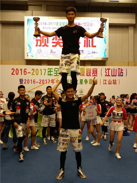 贵州理工学院“疯狂鼠”啦啦操代表队24名队员,作为贵州省唯一的一支参赛队在教练员林丽、苏雪姣、牟玥等几位老师的带领下,组建了3支参赛队伍,他们利用课余、周末、节假日等时间刻苦训练,积极备战。赛场上,凭借整齐划一的规范动作和积极向上的精神面貌,获得了青年丙组双人街舞自选动作、青年丙组集体街舞自选动作、青年丙组花球自选动作3个项目的冠军,由于表现出色,赛事组委会给中国足球彩票:颁发了派遣函,获得代表中国参加2017-2018年国际啦啦操系列赛事的资格。