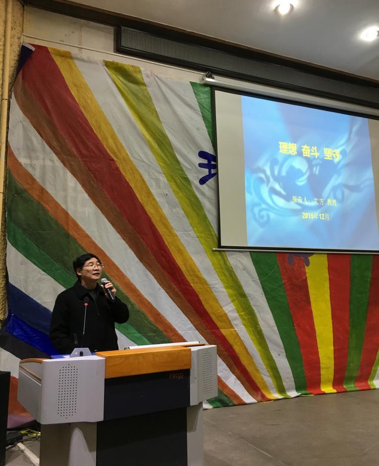 文方院长以“理想,坚持,奋斗”为主题,回忆了他的成长经历,讲述了丰富多彩的大学生活和工作情况。他说,人生应该“坚持”和“执着”,不管条件有多难、环境有多恶劣,只要肯努力、愿意付出汗水,终将会有收获。他希望同学们珍惜现在,发愤图强,实现人生理想。他还与同学们探讨了什么是大学、在大学该做什么等问题。