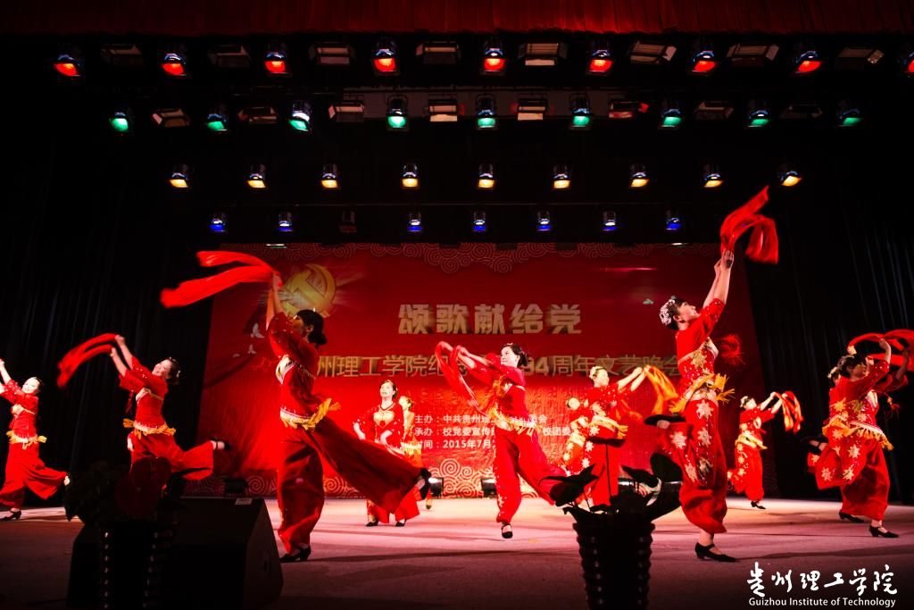 本网讯(宣传部 巫敏) 7月1日晚7时30分,在《天地喜洋洋》欢快的舞蹈中,经过精心策划、一个多月紧张排练的“颂歌献给党”贵州理工学院庆祝建党94周年文艺晚会在逸夫大礼 堂拉开帷幕。校领导曾羽、梁杰、蒙忠、宋广强、张波、王建平与1400余名师生一同观看了演出。