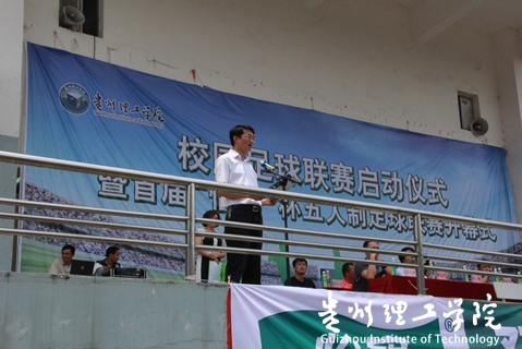 本网讯(体育教学部 田广/文 贾进祥/摄影) 6月2日中午13:00,贵州理工学院校园足球联赛启动仪式暨首届五人制足球赛开幕式在田径场举行,校党委书记曾羽、副书记宋广强、省教育厅学生处处长邓 生井以及部分兄弟院校代表出席开幕式。曾羽书记宣布联赛启动并为首届五人制足球比赛开球。