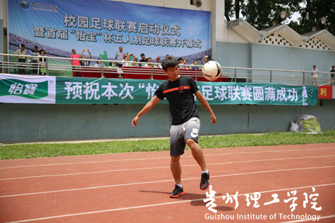 贵州人和足球俱乐部国酒茅台队现役运动员范云龙参加开幕式并表演了花式颠球,赢得现场观众的热烈掌声。教职工队与制药工程学院队开启本次比赛,范云龙还加入当天的教职工比赛队伍,为现场师生秀了一把球技。