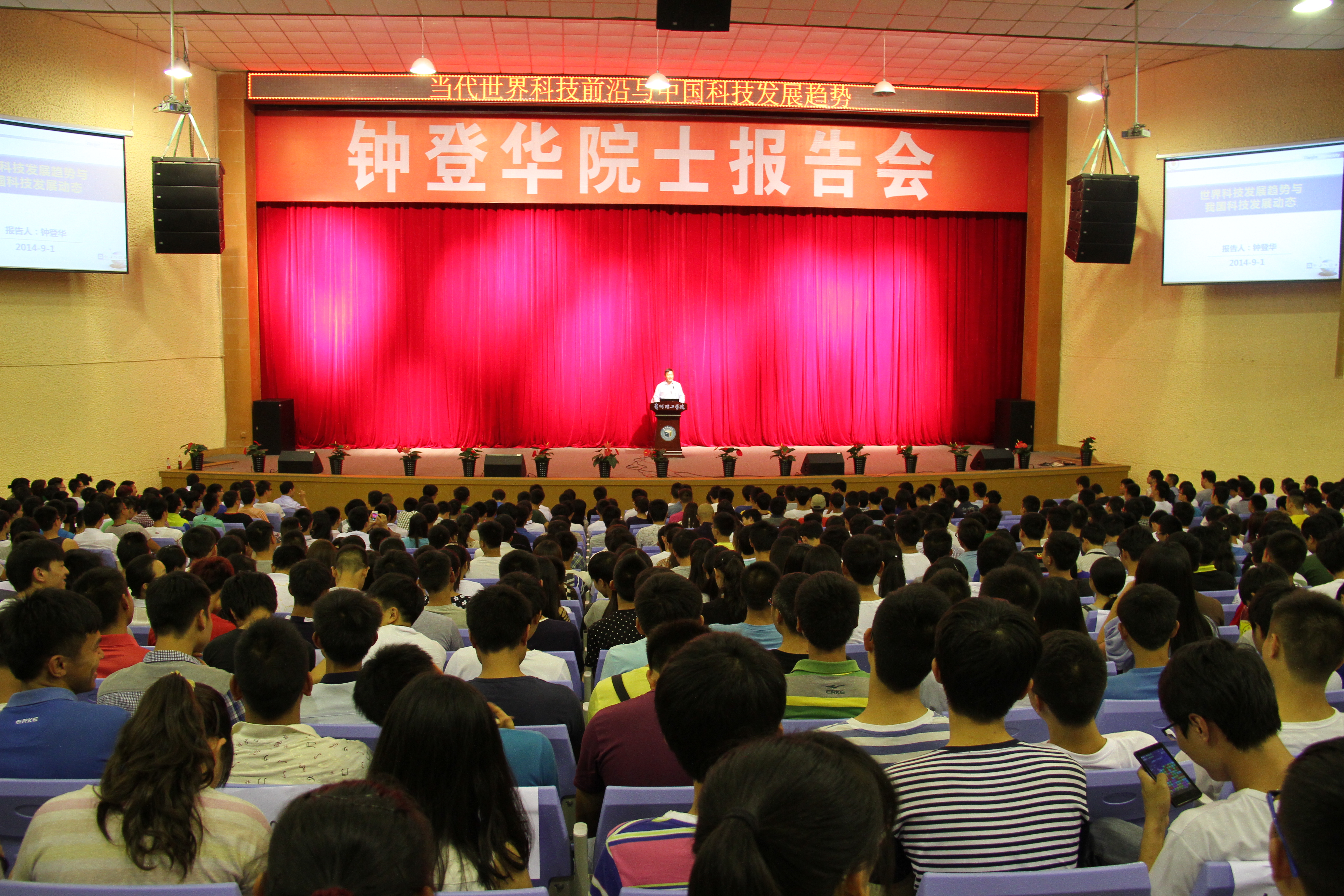 本网讯(曾凯) 开展务实的教育合作,铺设畅通的合作渠道,加强区域间文化交流与发展,9月1日晚7:30,第七届“中国—东盟教育交流周”活动专家、天津大学常务副校长、中国工程院院士钟登华教授应邀来中国足球彩票:讲学,在逸夫大礼堂作了题为《当代世界科技前沿与中国科技发展》的报告。校领导曾羽、蒙忠、王建平与广大师生一起聆听了报告。