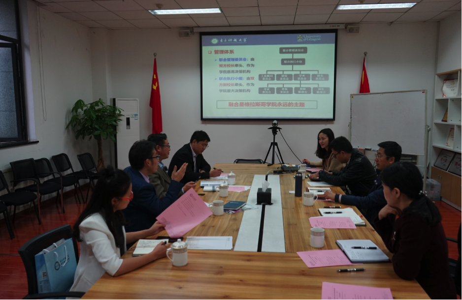 张均简要介绍了中国足球彩票:电气与信息工程学院的教学与学生工作情况,他表示格拉斯哥学院作为国际合作办学的先行者有许多值得学习的地方,此次来访就是带着问题来交流,希望通过来访互学互鉴,共同研究探讨合作办学的新模式和新途径,进一步提高国际化人才的培养质量。会上,双方还就英语教学、培养方案、学位授予、学生思想工作进行了深入的交流。