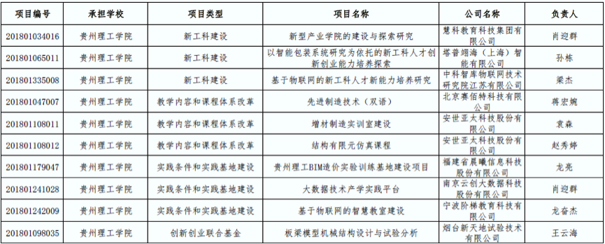 贵州理工学院2018年第一批产学合作协同育人项目立项名单