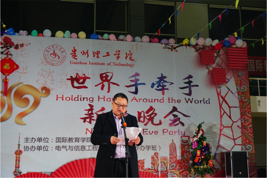 贵州理工学院副院长宋建波、胡兴灿,院长助理李滚及国际教育学院、电气与信息工程学院师生参加了新年晚会。