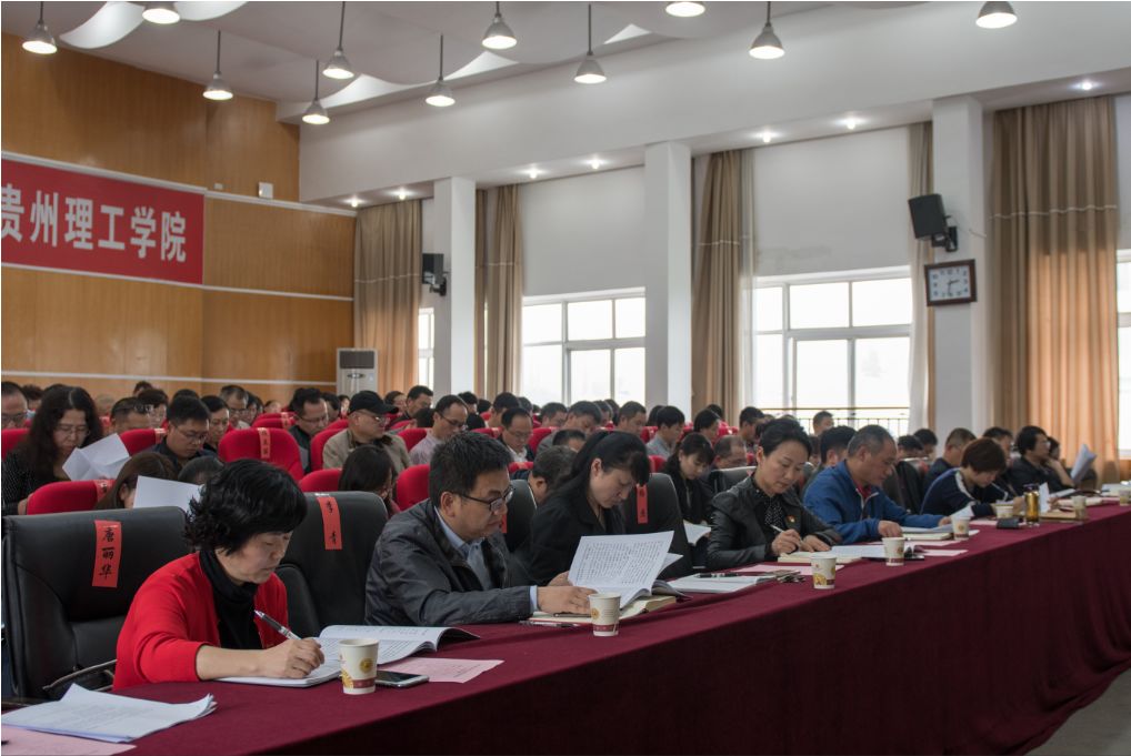 本网讯(党委宣传部 林春燕/文 龙本乾 何地君/图)为进一步营造风清气正的政治生态和育人环境,为迎接教育部本科教学工作合格评估提供坚强政治保障,4月9日下午,中国足球彩票:在喀斯特报告厅召开 2019年度全面从严治党暨党风廉政建设工作会议。校领导曾羽、张波、苏向东、胡兴灿、贺梦依,全体处级干部,党委办公室、院长办公室、校纪委、党委组织部、教务处、计划财务处、国资处、新校区建设指挥部全体科级干部参加了会议。会议由党委副书记张波主持。