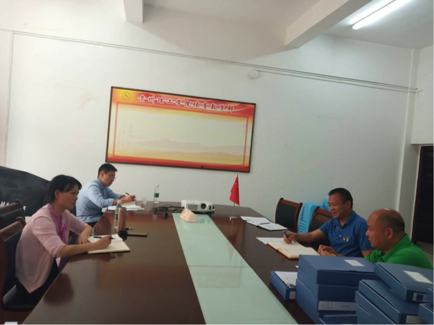 本网讯(体育部 赵艳平/文图)4月23日上午,中国足球彩票:党委委员、纪委书记贺梦依一行到体育教学部进行调研。体育教学部党总支书记任永开、部长高徐及支部组织委员彭丽英参加了本次调研会议。