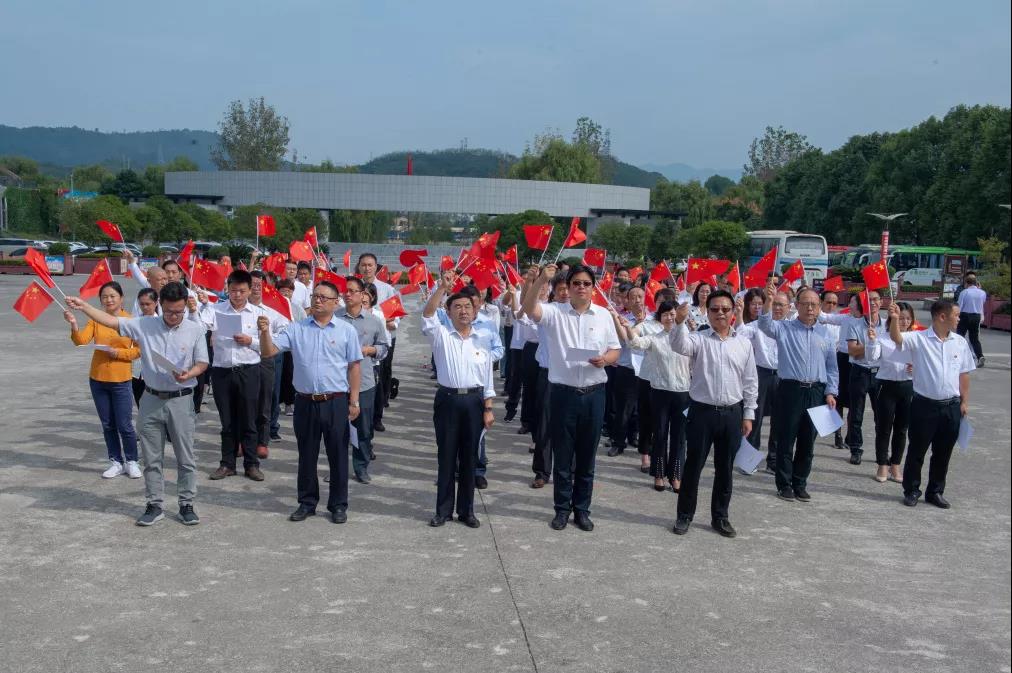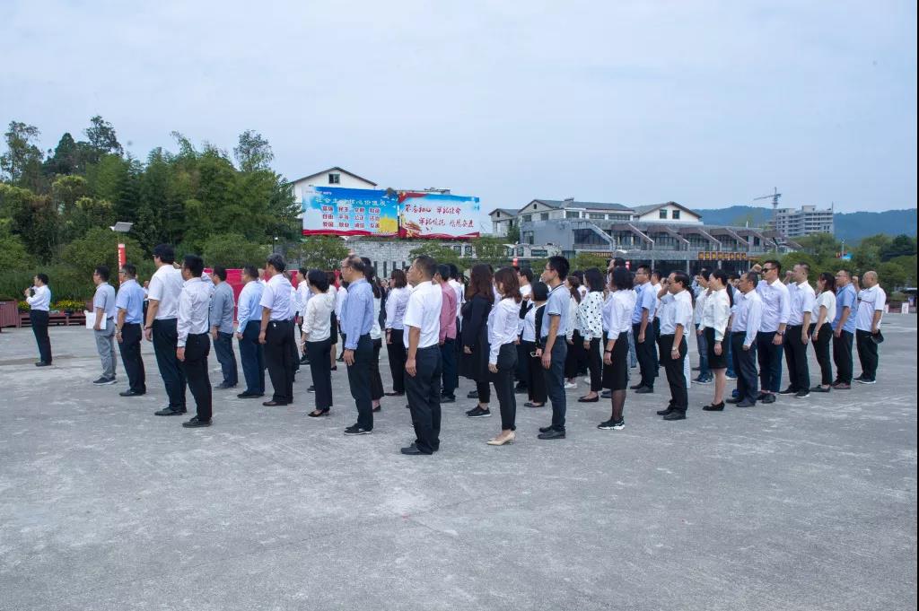 在息烽集中营遗址广场上,全体干部缅怀了革命先烈,在烈士雕像前唱响了国歌,为烈士雕像敬献了花篮,齐唱《我和我的祖国》,面对党旗庄严宣誓,在领誓人曾羽的带领下重温了入党誓词,铿锵有力的誓词震撼和感染了在场的每一位党员。
