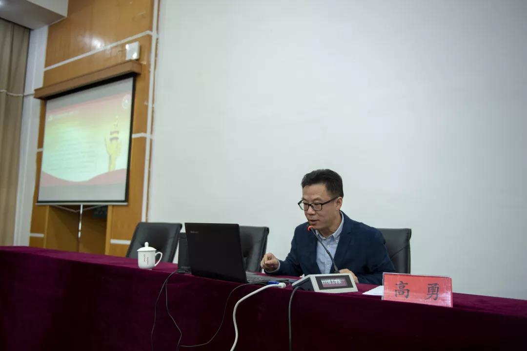10月20日上午,党委副书记高勇在喀斯特报告厅为学生工作部、校团委、保卫处处科级干部,各教学分院学生科(团总支)科级干部,全体辅导员和学生干部代表作题为“充分发挥学生党员干部引领作用,促进学风建设”的专题党课。