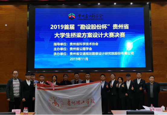 本网讯(交通工程学院 王轶多)2019年11月3日,2019 首届“勘设股份杯”贵州省大学生桥梁方案设计大赛决赛在贵州省交通规划勘察设计研究院股份有限公司举行。由贵州理工学院交通工程学院杨光强、张文利老师指导,学生王轶多、郑敏、王超、陈桥、徐茂飞共同设计完成的作品《寻梅桥》荣获一等奖,由娄锋、张文利老师指导,学生黄娇、余胜忠、邹川、陆玉雪、王兵兵共同设计完成的作品《终结者》荣获二等奖。
