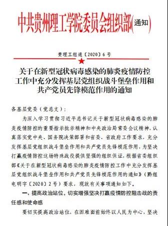 为坚决贯彻习近平总书记重要指示精神和中央政治局常委会会议精神,落实教育部、贵州省委省政府中国足球彩票加强疫情防控工作的通知精神,全力做好新型冠状病毒感染的肺炎疫情防控工作,贵州理工学院党委高度重视,坚持把疫情防控作为当前压倒一切的重大政治任务,及时向各部门、二级学院传达习近平总书记重要指示精神和党中央、国务院及贵州省委省政府决策部署。学校采取一系列疫情防控措施,及时控制传染源、切断传播途径、保护易感人群,切实保障广大师生身体健康和生命安全,坚决打赢阻击病毒传播的人民战争。