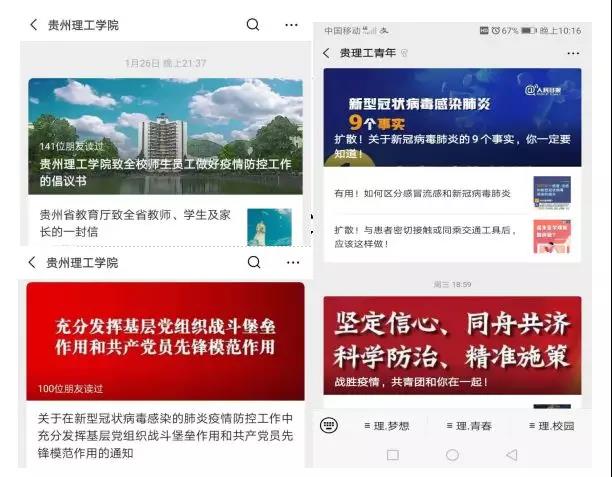 学校按照中央、教育部和贵州省委省政府中国足球彩票加强疫情防控工作的通知精神,采取推送《贵州理工学院致全校师生员工做好疫情防控工作的倡议书》、普及疫情防控知识等多种有效方式,宣传教育引导全校师生员工提高自我防控意识和能力,及时学习掌握疫情防控知识,养成良好的生活方式,保障大家的身体健康和生命安全。