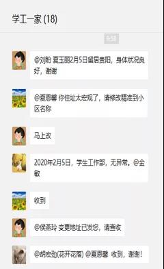 非常时期,学生工作部统筹调度全校学生管理工作队伍,进一步严明纪律、严格要求、严守防线。成立“学生工作部(处)应对新型冠状病毒感染的肺炎疫情防控工作领导小组”,在学校疫情防控工作领导小组领导指挥下统筹全校学生管理工作抗击疫情相关事宜;明确各招生学院分管学生工作院领导为学院疫情防控学生管理工作直接责任人,负责本院学生疫情防控工作的部署落实及相关信息报送的审定职责;各招生学院学生科负责人为学院疫情防控学生工作第一联络人,负责协调组织本院辅导员、班主任开展相关工作,按要求报送学生相关信息,同时确保各项工作要求及时通知到所在学院的每位同学;班主任通过qq、微信深入班级,和学生建立密切联系,全面掌握班级学生情况,配合辅导员做好防控期间所负责班级学生的思想教育和引导工作。