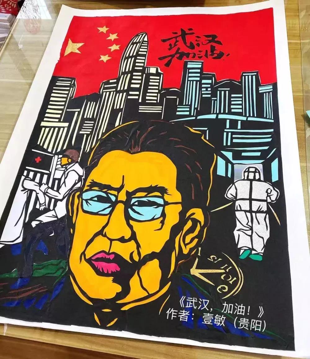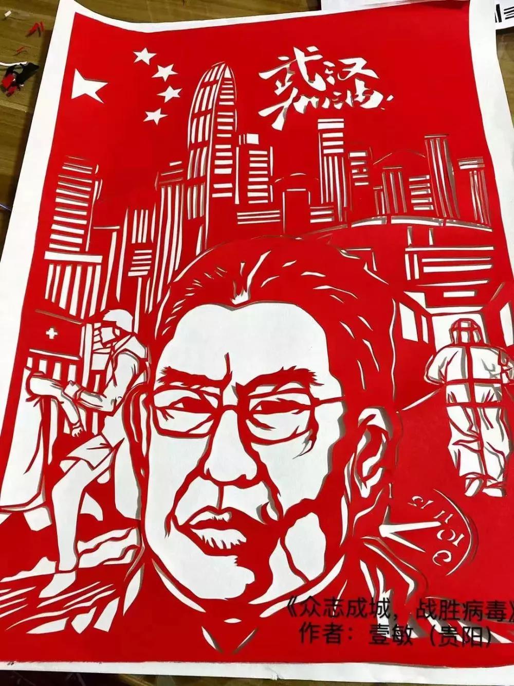 作品突出钟南山和白衣战士,象征着我们国家有力量,人民有智慧,构筑起坚不可摧的铜墙铁壁,牢牢地保护着人民的身体健康,坚决打赢消灭新型冠状病毒这场没有硝烟的战争