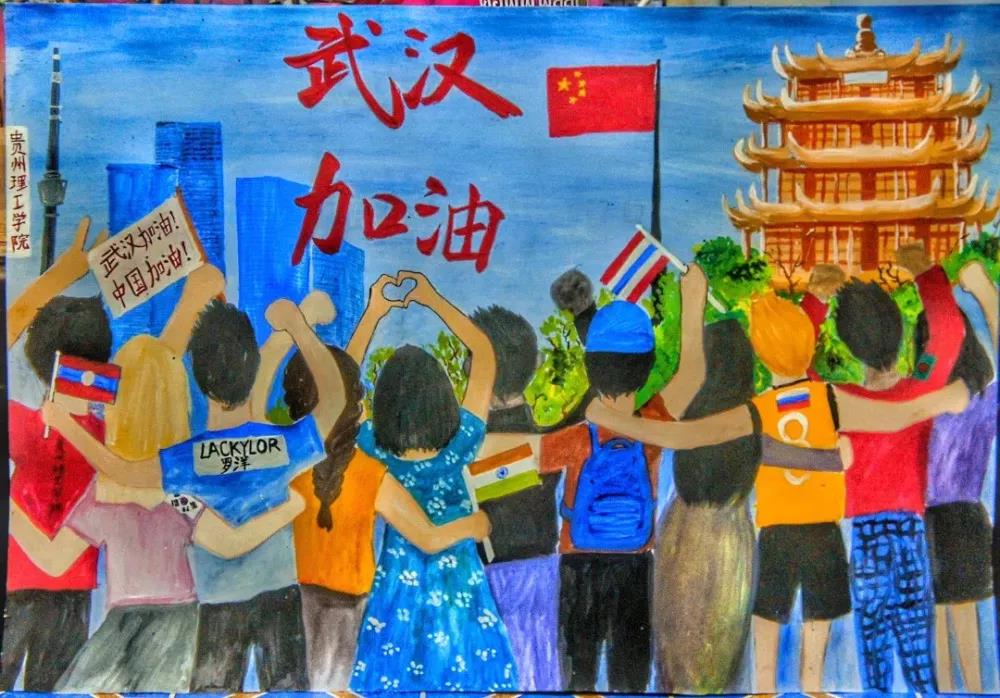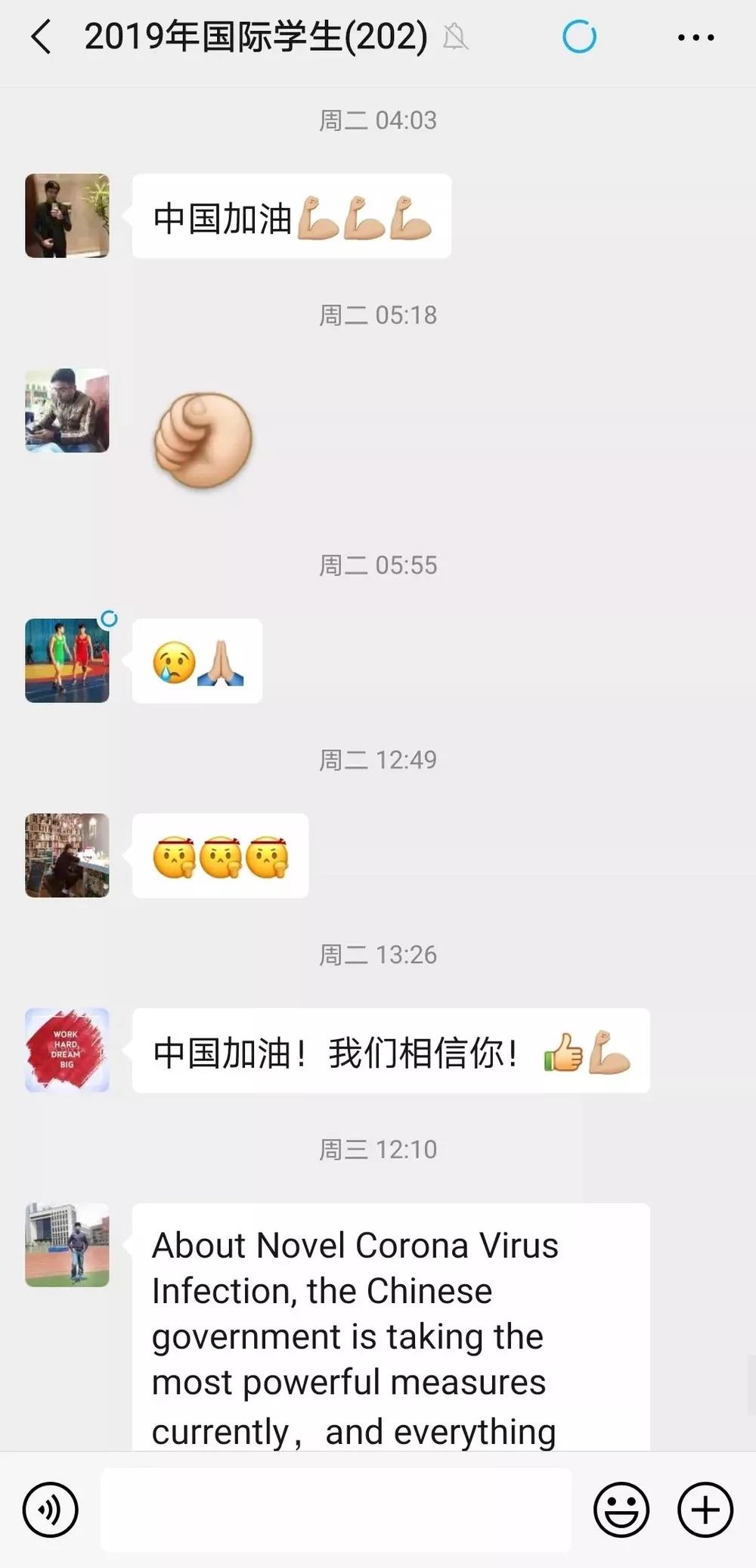 同学们在朋友圈、微信群、抖音等为中国、武汉加油