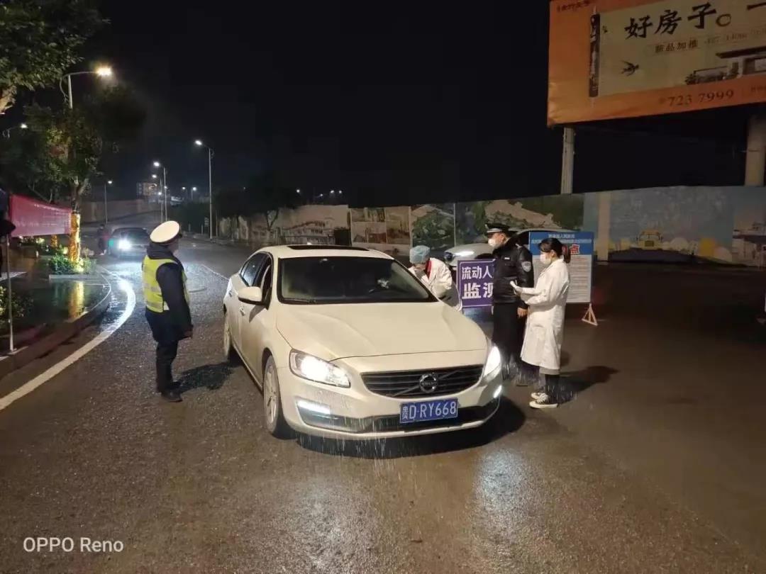 夜幕降临,在贵州省铜仁市思南县乌江三桥处体温测量点仍然有着疫情防控的工作人员在对来往车辆进行车辆登记和体温测量。柯昌青同学便是其中的一员,她手里拿着记录本,正在细心的记录相关人员信息。