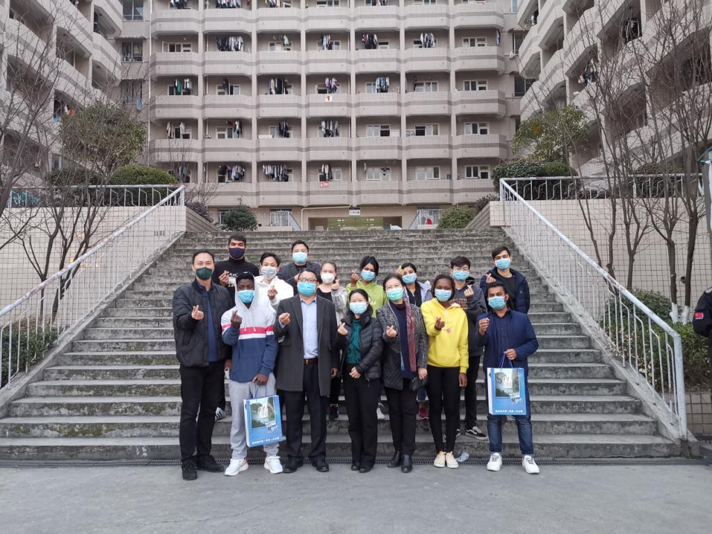 省外事办、教育厅领导向国际学生送来了一些防护用品,并与学生进行了亲切的交流,了解学生们近期的身体状况、学习情况和心理健康状况,认真听取了同学们疫情期间的感受和经历,随后叮嘱学生一定要注意加强自我防护,尽量不要外出,外出时佩戴好口罩,勤洗手,多通风,保持良好的心态,与中国一起齐心协力,共同抗击疫情。