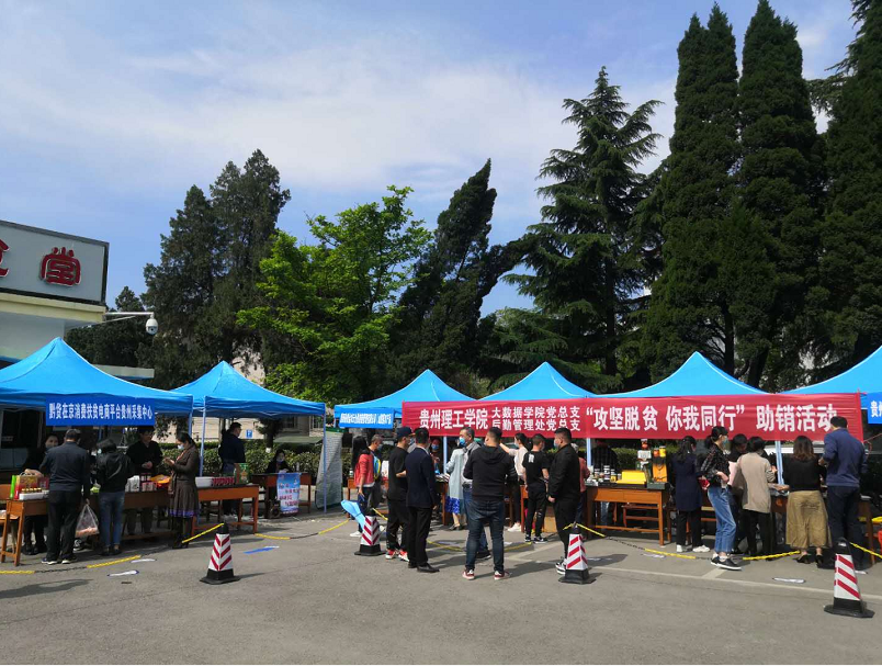 在疫情防控进入常态化阶段,面对学生还没有返校,食堂没有大规模开放的情况下,贵州理工学院认真学习贯彻习近平总书记在决战决胜脱贫攻坚座谈会上的重要讲话精神、落实贵州省脱贫攻坚“奋力冲刺九十天打赢歼灭战”动员大会精神,坚持一刻不停、一步不错、一天不误,经多方协调、积极沟通,最终联合四家公司从纳雍、望谟、册亨、贞丰等13个县采购111种当地农特产品到校做巡回展销,丰富“校农结合”新形式。